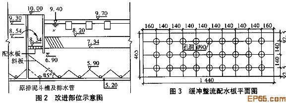 ③在沉淀池進水口處缺乏穩(wěn)流措施(配水區(qū)的設計是為了使已形成的礬花不致被打碎并使絮凝池出水均勻地流入斜管沉淀池的配水區(qū)),絮凝池出口也應有整流措施,另外因斜管區(qū)下 面的配水高度除要保證進口端與末端配水均勻外,還要考慮安裝和檢修的要求,因此一般其高度≥1.5m,但該廠沉淀池進水處無整流措施且配水高度也僅有1.4m,故對沉淀效果有一定影響;