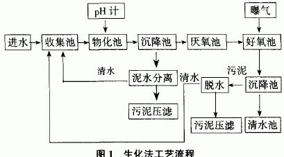 生化法實驗時由新大禹公司制造了一個小型模擬裝置進行試驗。該方法工藝流程如圖1所示。