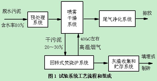 為此,本研究提出采用以霧化干燥技術(shù)進(jìn)行污泥干燥,成熟的回轉(zhuǎn)式焚燒爐進(jìn)行焚燒的技術(shù)路線。為控制煙氣污染,采用旋風(fēng)分離器+生物除臭噴淋洗滌塔為煙氣凈化系統(tǒng),形成一整套污泥干化焚燒集成系統(tǒng),并進(jìn)行了60噸/d規(guī)模的示范工程研究。