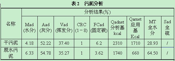 本研究采用的污泥有機(jī)物含量較低,平均在36%,這是由于蕭山城市污水處理廠水質(zhì)性質(zhì)所決定。在這一水質(zhì)情況下,對(duì)脫水污泥和干化污泥進(jìn)行了全分析結(jié)果如表2: