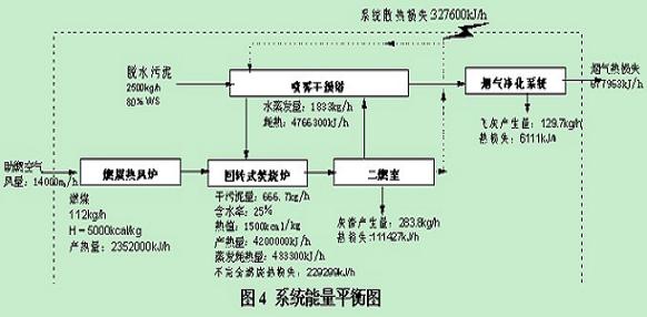 3) 通過優(yōu)化設(shè)備結(jié)構(gòu)設(shè)計(jì),合理設(shè)計(jì)噴霧塔塔身和回轉(zhuǎn)式焚燒爐爐體,充分利用焚燒系統(tǒng)產(chǎn)生的高溫?zé)煔馑瑹崮芨稍镬F化污泥,降低出口余溫,充分利用余熱,使系統(tǒng)熱能綜合利用效率最大化。同時(shí)提高反饋控制,調(diào)控污泥顆粒的干燥程度,確保安全(粉塵產(chǎn)生和自燃問題)、后續(xù)尾氣處理的經(jīng)濟(jì)有效(減少)以及污泥熱值的充分利用;