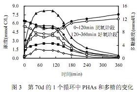 PHAs 采用氣相色譜法[5];VFAs 采用氣相色譜法[6];糖原采用蒽酮法測定[7];SOP 采用Vanadate-Molybdate 方法測定[8]。