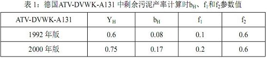式(6)是德國1992年版ATV-DVWK-A131中剩余污泥產率計算式;式(7)是2000年版ATV-DVWK-A131中剩余污泥產率計算。