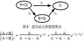 動(dòng)力學(xué)研究有助于揭示反應(yīng)歷程,了解反應(yīng)機(jī)理及限速步驟,為工程設(shè)計(jì)提供指導(dǎo)并預(yù)測(cè)反應(yīng)結(jié)果。通用動(dòng)力學(xué)模型[6](圖5和公式1)以三個(gè)動(dòng)力學(xué)參數(shù)關(guān)聯(lián)了宏觀有機(jī)物氧化和中間產(chǎn)物有機(jī)酸變化,較好地揭示了一般有機(jī)物濕式氧化規(guī)律。