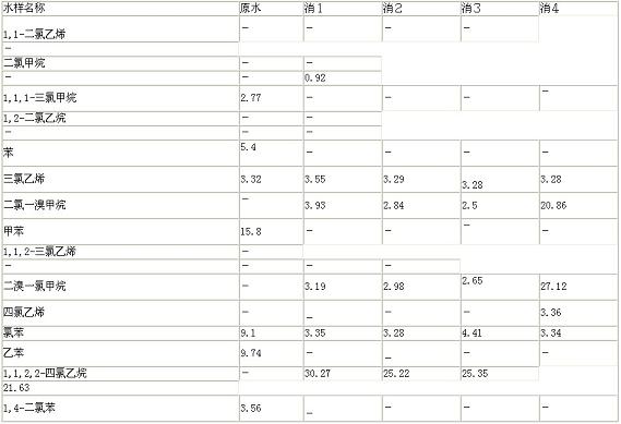 上述TOX和VOCs測(cè)試結(jié)果表明,采用二氧化氯處理黃浦江和長(zhǎng)江原水,還會(huì)產(chǎn)生了TOX和揮發(fā)性鹵化有機(jī)物。它們的量分別為161.6mg/l、45.2mg/l和40.0mg/l、28.0mg/l,黃浦江原水中產(chǎn)生的TOX相對(duì)較高,與VOCs檢出量的差值較大,說明VOCs測(cè)試出的項(xiàng)目?jī)H僅是揮發(fā)性鹵化有機(jī)物的一小部分,還有大部分未被檢出的鹵化有機(jī)物,有待進(jìn)一步研究和發(fā)現(xiàn)。