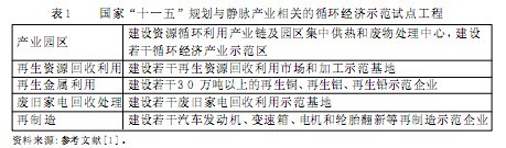 同時, “十一五”規(guī)劃還確定在重點行業(yè)、 領域、 產業(yè)園區(qū)和城市開展循環(huán)經濟示范企業(yè)和試點工程創(chuàng)建工作,開展循環(huán)經濟試點。以 “十一五” 規(guī)劃為契機,靜脈產業(yè)作為循環(huán)經濟發(fā)展的重點領域, 也得到空前發(fā)展。 [4]