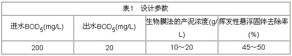 根據(jù)進(jìn)、出水BOD5進(jìn)行設(shè)計(jì),其設(shè)計(jì)參數(shù)見(jiàn)表1。