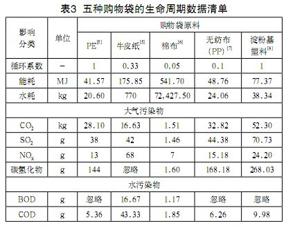 2 環(huán)保購物袋的生命周期評價(jià)與比較