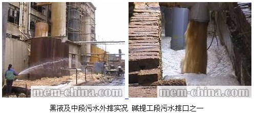 黑液及中段污水外排實(shí)況 堿提工段污水排口之一
