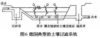 土壤過(guò)濾系統(tǒng)是指利用土壤中的有機(jī)質(zhì)、微生物以及植物等的作用對(duì)雨水進(jìn)行處理的一種方法。土壤過(guò)濾對(duì)于營(yíng)養(yǎng)鹽和重金屬有較好的去除效果。以下是德國(guó)采用的土壤過(guò)濾系統(tǒng)[2]。