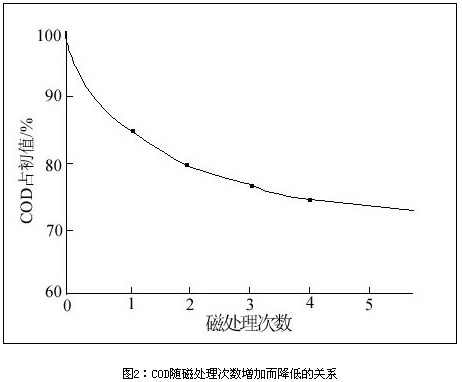 (b)厭氧條件下,污水磁化對COD降解也很顯著,實驗表明,水溫40℃在上述適宜磁場下,可使COD的去除率比不磁化的提高21%~28%,但其機理尚需進一步研究。