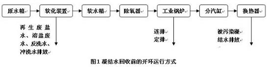 回收1噸凝結(jié)水可減少鹽耗0.55kg,以凝結(jié)水回收率70%計(jì)算,生產(chǎn)每噸蒸汽可節(jié)約用鹽0.55×70%=0.39kg