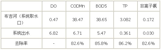 | 表3.人工濕地系統(tǒng)處理生活污水水質(zhì)凈化效果 |