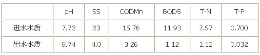 經(jīng)過三年多的運(yùn)行,盡管進(jìn)水濃度變化較大,但出水仍然比較好和穩(wěn)定。表2監(jiān)測結(jié)果表明,可達(dá)到去降率COD為92.5%,BOD78.5%,SS98.9%,達(dá)到項(xiàng)目的設(shè)計(jì)要求和國家標(biāo)準(zhǔn)。直接運(yùn)行費(fèi)用(藥劑費(fèi)0.25元,電耗0.2度)為0.38元/噸水。