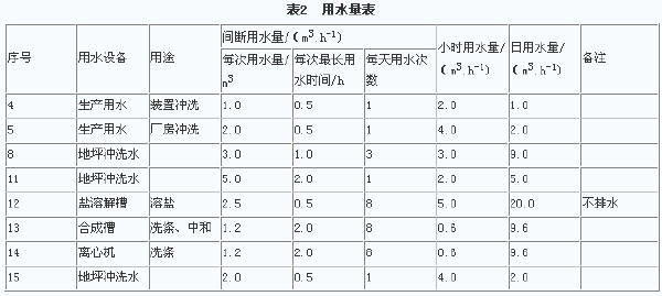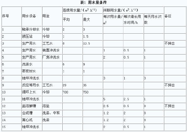 表1中摘錄了某化工廠初步設(shè)計時,化工工藝等專業(yè)向給排水專業(yè)所提的用水量條件表內(nèi)容中的一部分。