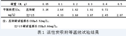 將壓塊碳(泰興)與柱狀碳(ZJ-15)對原水的CODMn做吸附等溫線,結(jié)果見表1。