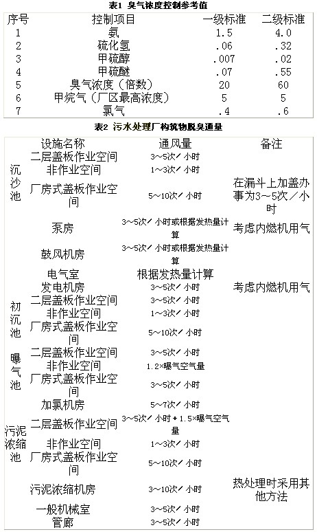 污水處理廠臭味的處理方法有很多,如直接焚燒法、催化劑氧化法、酸堿洗凈法、臭氣氧化法、化學(xué)吸附法、活性碳物理吸附法、生物脫臭法、土壤脫臭法等,但經(jīng)濟實用的還屬生物除臭技術(shù)。當(dāng)采用排風(fēng)換氣時脫臭時,污水處理廠處理構(gòu)筑物通氣量可參考表2數(shù)值。本文將對土壤法、生物法、離子法簡單論述。