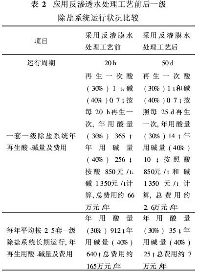 3.2 應(yīng)用反滲透水處理技術(shù)前后的經(jīng)濟(jì)性比較分析