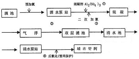 五水廠生產(chǎn)能力20萬噸/天,從滇池直接取水,通過以下工藝進(jìn)行處理: