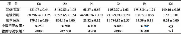 表3垃圾焚燒飛灰、電鍍污泥浸出毒性試驗(yàn)結(jié)果(mg/L)