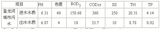 污水中CODcr去除的原理與BOD5基本相同,但CODcr的去除率與落水村生活污水的組成有關(guān)。對(duì)于那些主要以生活污水及其成分與餐飲廢水組成的綜合污水,BOD5/CODcr比值往往接近0.5甚至大于0.5,出水中CODcr值可控制在較低的水平。而成分主要以工業(yè)廢水為主的城市污水,其BOD5/CODcr比值較小,其污水的可生化性較差,此類(lèi)污水,采用硅藻精土水處理劑,并使用高效水力循環(huán)澄清池污水處理設(shè)備,將充分發(fā)揮該工藝強(qiáng)于其他工藝的突出特點(diǎn),處理后污水中殘存的CODcr將獲得最高的效果,去除率在90%以上,甚至在95%以上。大理登龍河工程進(jìn)出水指標(biāo)測(cè)試結(jié)果如下: