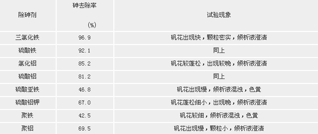 附表 不同除砷劑的除砷效果和試驗現(xiàn)象(1)