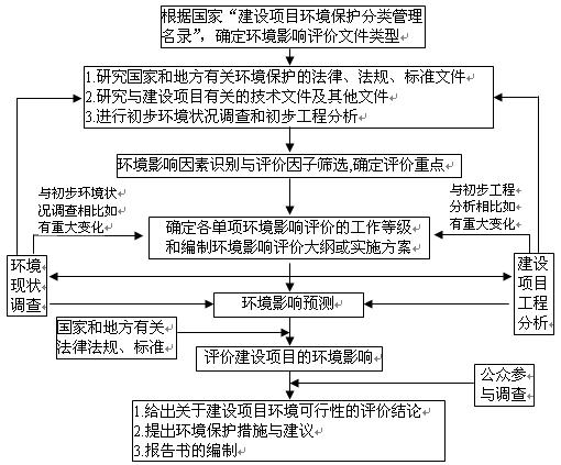 環(huán)境影響評(píng)價(jià)是一項(xiàng)整體性非常強(qiáng)的工作,從系統(tǒng)論的角度來(lái)看,它涉及到許多程序和環(huán)節(jié)。其具體工作程序用圖1表示。