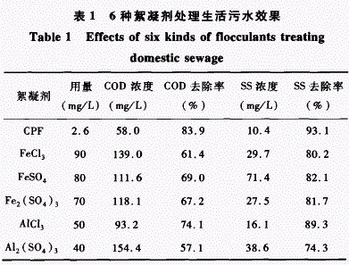 高分子絮凝劑CPF的合成和用于生活污水處理研究