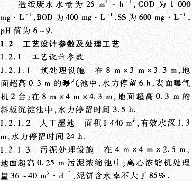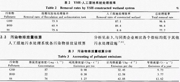 1)YSH一人工濕地處理造紙廢水,可充分利用土壤一微生物一植物對(duì)有機(jī)物的去除能力,在pH7.30—7.80條件下,主要污染物COD,BOD和ss的去除率分別為96.6% ,96.4% 和77.7% ,處理出水不僅達(dá)標(biāo)而且可用于農(nóng)灌,實(shí)現(xiàn)了廢水資源化.