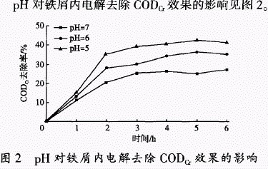 3.1 pH對鐵屑內(nèi)電解去除COD cr效果的影響