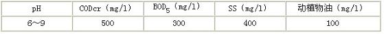 該企業(yè)廢水處理后排入市政污水處理廠,必須達到污水排入城市下水道的水質(zhì)標準,即GB8978-1996《污水綜合排放標準》表4中三級標準,主要污染物最高允許排放濃度如下: