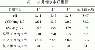 經(jīng)對(duì)目前礦井實(shí)際涌水水質(zhì)的檢測,該礦井涌水水質(zhì),硬度大、礦化度高,具體參數(shù)如表1所示。