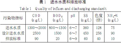本污水處理工程涉及的污水來(lái)源于廣東省某食品有限公司在醬油加工過(guò)程中排放的生產(chǎn)污水。該污水中含有原料所夾帶的泥沙、半成品和成品流失而形成的較高濃度的有機(jī)污染物質(zhì)。該廠廢水的最大量為800m3/d,考慮到生產(chǎn)量的波動(dòng),該工程的設(shè)計(jì)水量為1000m3/d,處理后出水水質(zhì)執(zhí)行《廣東省污水排放標(biāo)準(zhǔn)》(DB44/26-2001)一級(jí)標(biāo)準(zhǔn)。該工程的設(shè)計(jì)進(jìn)水水質(zhì)和排放標(biāo)準(zhǔn)見(jiàn)表1。