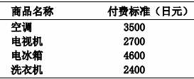 消費(fèi)者:必須將廢舊電器交給零售商,同時(shí)負(fù)擔(dān)回收、運(yùn)輸、再生利用的費(fèi)用。再生利用付費(fèi)標(biāo)準(zhǔn)(見表2):