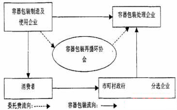 日本的資源垃圾分類回收系統(tǒng)包括家庭垃圾分類回收系統(tǒng)、集團(tuán)回收系統(tǒng)和生產(chǎn)商及流通領(lǐng)域回收再利用系統(tǒng)。日本的家庭垃圾分類回收系統(tǒng)中首先要求資源垃圾家庭分類,由市町村政府負(fù)責(zé)收集,或由集團(tuán)收集,或在銷售商店進(jìn)行回收,最后到分選企業(yè)進(jìn)行加工,再送到各再生處理企業(yè)進(jìn)行再生利用。下面是日本的容器包裝和廢舊家電的回收再利用示意圖。1997年,日本的《容器包裝再循環(huán)法》得到正式實(shí)施。由各地政府分類收集,然后由容器包裝處理廠家進(jìn)行再生處理的做法從此作為一種義務(wù)規(guī)定下來。各地政府各自制定分類回收計(jì)劃,分類執(zhí)行,然后根據(jù)排出量的大小確定各處理廠家的責(zé)任份額,由各廠家進(jìn)行分別處理。
