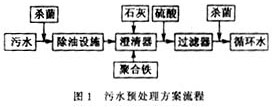 根據(jù)污水水質(zhì)特點(diǎn),在水中COD含量不高的情況下,考慮循環(huán)水處理要求,擬采用下列處理方案應(yīng)更經(jīng)濟(jì)和可行,見圖1。