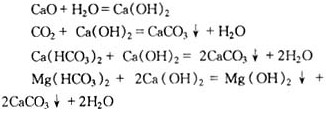 根據(jù)水的離子成份,石灰加入后將會發(fā)生下列反應(yīng):