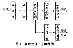 根據(jù)廢水水質(zhì)特點(diǎn)和排放要求,主體工藝采用厭氧和CAST工藝。具體工藝流程見(jiàn)圖1。