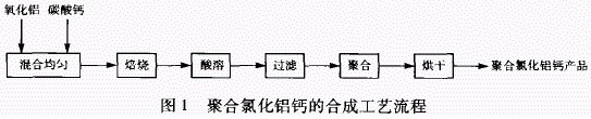 氧化鋁和碳酸鈣于高溫條件下反應(yīng)生成的鋁酸鈣在鹽酸中溶解后,在一定pH條件下聚合生成聚合氯化鋁鈣,干燥后得到固體產(chǎn)品,主要反應(yīng)為: