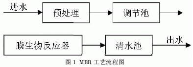 膜生物反應器(Membrane bioreactor,MBR) 是一種由膜分離單元與生物處理單元相結合的新型水處理技術。因其具有出水水質良好,可滿足一般回用要求,設備緊湊,占地面積小,運行管理方便等特點,在回用領域越來越受到人們的重視,應用日益廣泛。