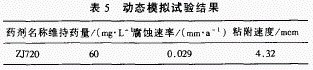 試驗?zāi)康氖窃谟袀鳠崦鏃l件下,全面考察全有機高效緩蝕阻垢劑ZJ一720的緩蝕阻垢性能。試驗結(jié)果見表5。