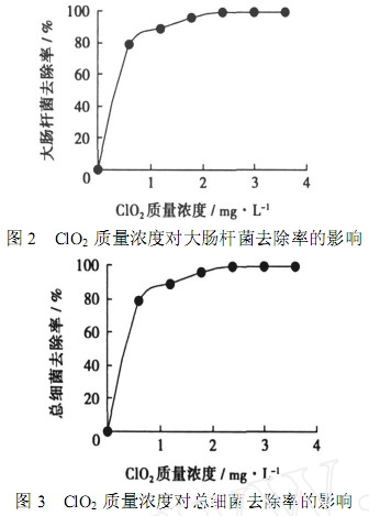 2. 1. 2 ClO2 質(zhì)量濃度對總細菌和大腸桿菌去除率的影響