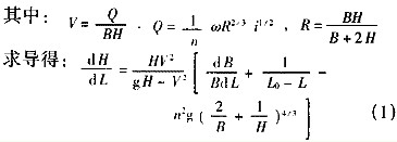 等寬度法即配水槽槽寬B一致,將dB/dL=0代人式(1),得: