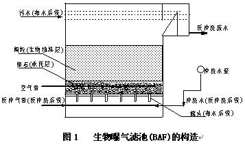 現(xiàn)代曝氣生物濾池(簡稱BAF)是在70年代末80年代初出現(xiàn)的一種膜法生物處理工藝,最初是應(yīng)用在污水處理的三級處理上。其將生物接觸氧化與過濾結(jié)合在一起,不設(shè)沉淀池,通過反沖洗再生實(shí)現(xiàn)濾池的周期運(yùn)行。在廢水的二級處理中其保持接觸氧化的高效性,同時又可通過過濾獲得高的出水水質(zhì)。90年代初得到了較大發(fā)展(圖1)。以BAF為代表的工藝主要優(yōu)點(diǎn)如下: