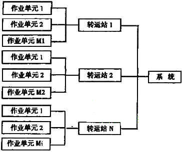 垃圾轉(zhuǎn)運(yùn)系統(tǒng)按照其結(jié)構(gòu)特征及相應(yīng)功能可劃分為三個(gè)層次:作業(yè)單元、轉(zhuǎn)運(yùn)站和轉(zhuǎn)運(yùn)系統(tǒng)。作業(yè)單元是指完成垃圾轉(zhuǎn)運(yùn)這一特定功能的基本組合,在該單元中最少需要一臺(tái)填裝機(jī),一套受料/載運(yùn)設(shè)備(如一臺(tái)車底盤和兩個(gè)箱體);轉(zhuǎn)運(yùn)站是由若干作業(yè)單元構(gòu)成,服務(wù)于特定區(qū)域且具備一定規(guī)模能力的垃圾轉(zhuǎn)運(yùn)設(shè)施;而轉(zhuǎn)運(yùn)系統(tǒng)則指其服務(wù)區(qū)域內(nèi)的若干垃圾轉(zhuǎn)運(yùn)站合理布局和可靠運(yùn)行的功能組合,即多個(gè)作業(yè)單元組成轉(zhuǎn)運(yùn)站,多個(gè)轉(zhuǎn)運(yùn)站又組成轉(zhuǎn)運(yùn)系統(tǒng)。車輛包括作業(yè)車輛和備用車輛,作業(yè)車輛是指維持系統(tǒng)內(nèi)正常運(yùn)行所需要的轉(zhuǎn)運(yùn)車輛,備用車輛則是指系統(tǒng)某一環(huán)節(jié)發(fā)生故障時(shí)或系統(tǒng)發(fā)生變化時(shí)具備替換或調(diào)整功能的作業(yè)車輛。