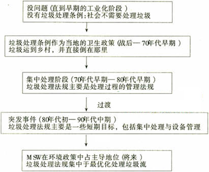 在 20世紀(jì)初到50年代的歐洲,垃圾管理一直只局限于環(huán)境衛(wèi)生方面,并且只限于人口密集的城鎮(zhèn)地區(qū),主要由地方政府自愿承擔(dān)垃圾處理工作。所涉及的范圍也很窄,并且不包括工業(yè)垃圾。在隨后的發(fā)展中,一些法規(guī)和屢屢出現(xiàn)的“事故”推動(dòng)著垃圾管理體制的發(fā)展。在這過(guò)程中,歐洲各國(guó)逐步完善各自的管理體制,找出了一些有效的方法來(lái)管理垃圾。如運(yùn)用經(jīng)濟(jì)杠桿刺激垃圾處理市場(chǎng)的發(fā)展,積極尋求與本國(guó)民間組織的合作,加強(qiáng)非政府組織在垃圾管理中的作用等等。這些措施的實(shí)施,基本解決了開始時(shí)出現(xiàn)的問(wèn)題。80年代以后,隨著包裝垃圾的增加,歐洲各國(guó)著重加強(qiáng)了包裝垃圾的處理,并制定了一系列法規(guī)。