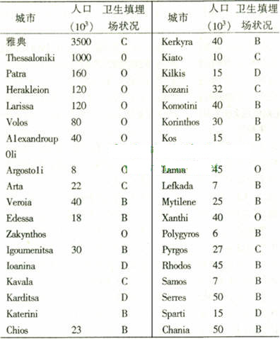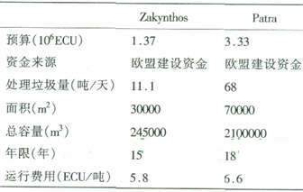 表3 希臘二個(gè)衛(wèi)生填埋場(chǎng)的有關(guān)數(shù)據(jù)![]() |