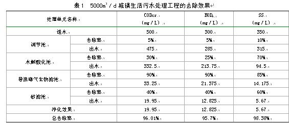 5000m3/d城鎮(zhèn)生活污水處理工程對污染物的去除效果見表1。