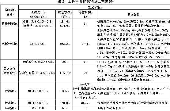 該工程主要構(gòu)筑物及工藝參數(shù)見表2。