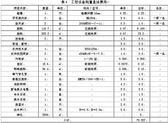 該工程設(shè)備購置直接費(fèi)用見表4。
